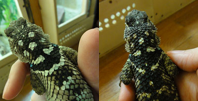 Hier noch einmal von der Seite. Schön zu sehen ist hier auch die blaue Schuppe an der Schultern. Das rechte Bild ist leider etwas dunkel geraten.