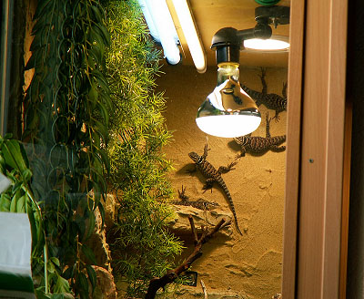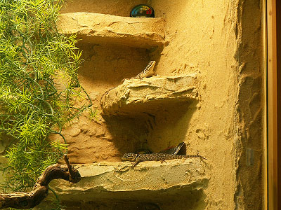 sonnen und verstecken können. Die Wände des Terrariums sollten daher felsig verkleidet sein. Das lässt sich